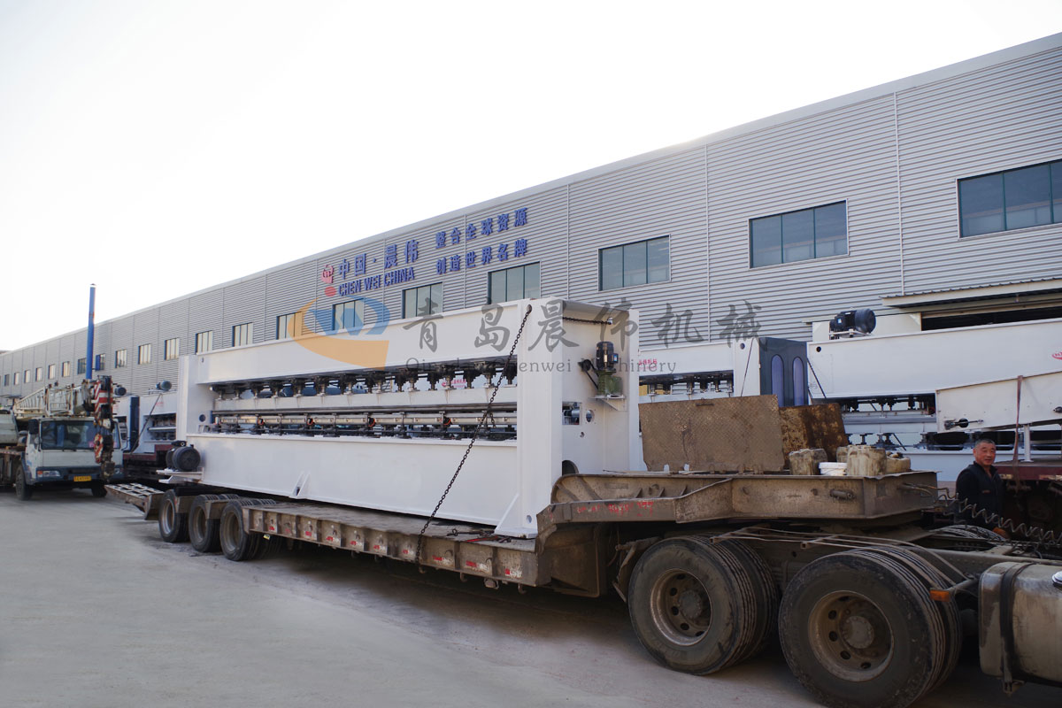 5. CWPW-鋪網(wǎng)機(jī):用于將梳理纖網(wǎng)通過移動小車交叉折疊為所需幅寬和定量的多層纖網(wǎng),以供后道工序使用。鋪網(wǎng)輥采用特殊結(jié)構(gòu),加裝壓網(wǎng)輥和導(dǎo)流板,不飄網(wǎng)不起皺,五只大功率電機(jī)精確控制各部件的運(yùn)動,電動輸出簾高度調(diào)節(jié)裝置