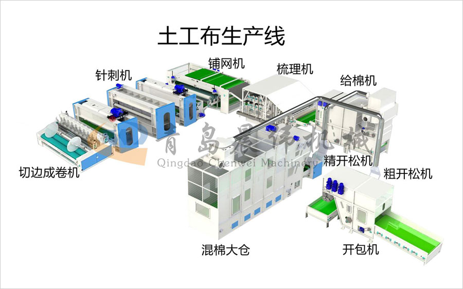 開包機-開松機-振動給棉機-梳理機-鋪網機-針刺機-切邊成卷機